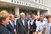 Bundesinnenminister Horst Seehofer (4.v.r.) überzeugte sich beim öffentlichen Training in seinem Haus vom Können der besten jungen Bauhandwerker, die im Herbst bei den Berufs-Europameisterschaften für Deutschland antreten werden (Foto: © ZDB/Becker)
