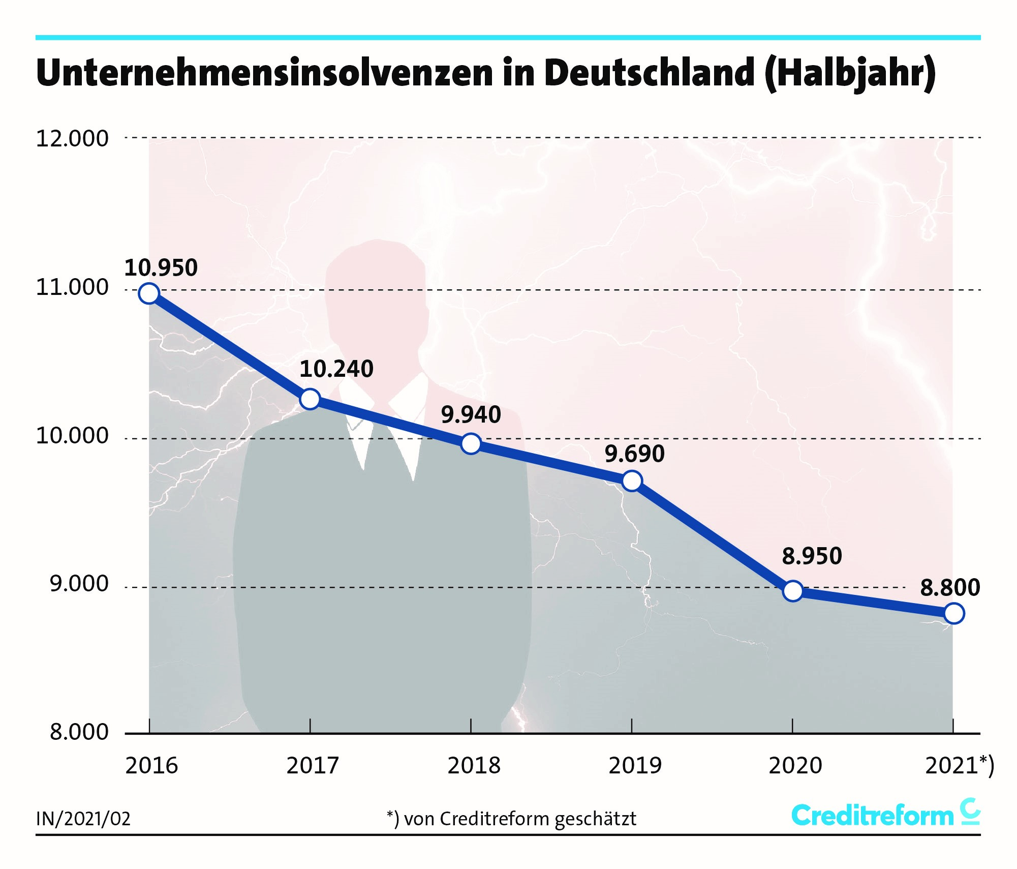 Im ersten Halbjahr 2021 sank die Zahl der Unternehmensinsolvenzen erneut. Sondereffekte wie die Aussetzung der Insolvenzantrags-Pflicht haben das Insolvenzgeschehen verzerrt. Kleinstbetriebe litten am meisten. Das meldet die Creditreform.