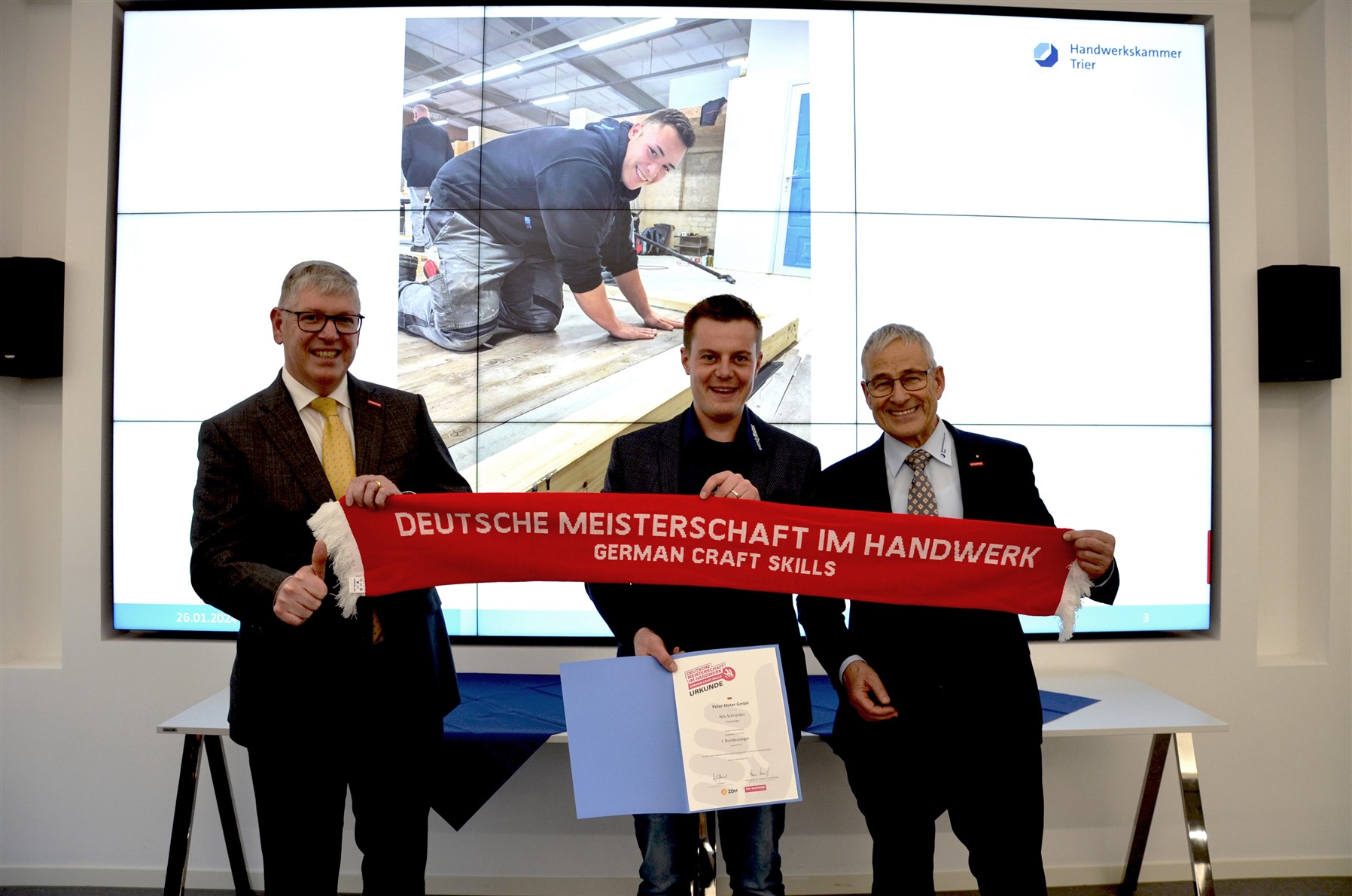Müller und Handwerkskammer-Chef Axel Bettendorf gratulierten im Namen des regionalen Handwerks. "Heute möchten wir Euch junge und erfolgreiche Nachwuchsfachkräfte ehren", sagte Müller. "Ihr zeichnet Euch durch Motivation, Einsatz und Kreativität aus. Dazu gehören selbstverständlich auch die hervorragenden Ausbilder, die hier Begeisterung und Leidenschaft geweckt haben. Ich kann nur sagen: Super! Herzlichen Glückwunsch!" Auch die Bundestagsabgeordneten Verena Hubertz und Patrick Schnieder sowie die Landtagsabgeordneten Lars Rieger, Gordon Schnieder und Joachim Streit gratulierten.