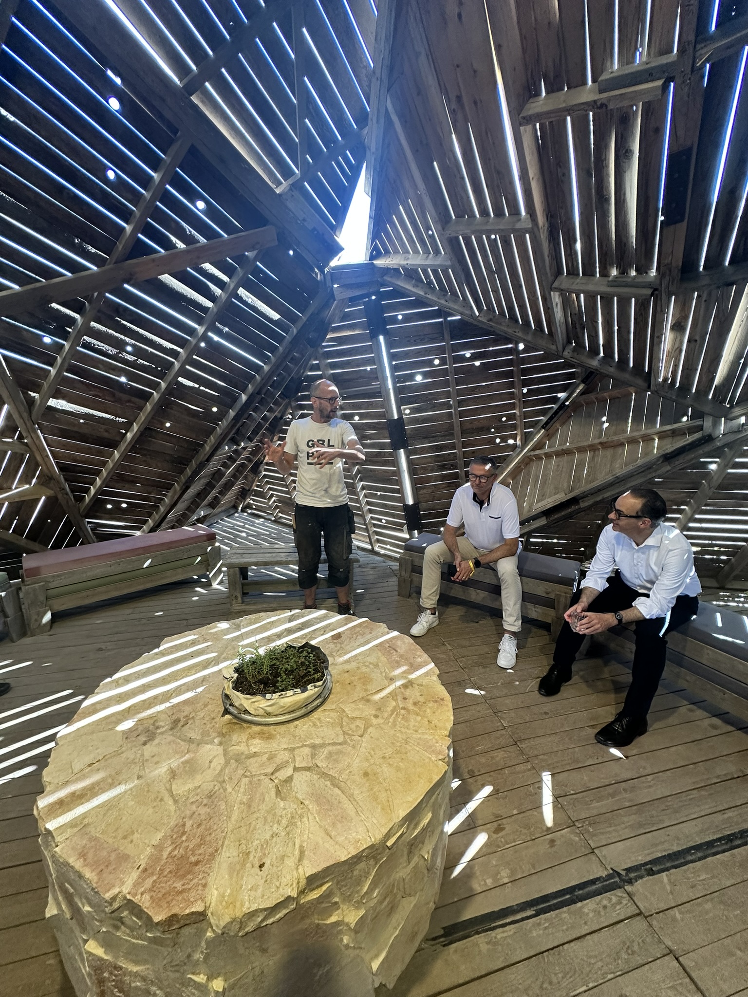 Tamar Tuchler (r.) und Shay Farkash führten die Delegation durch die Anlagen von Mikve Israel. Foto: © Lars Otten/DHBAlle Israelis, auf die die Gruppe im Verlauf ihres Aufenthalts getroffen ist, begegneten ihr mit großer Herzlichkeit, dankbar für das Zeichen der Solidarität und die Bereitschaft zum Austausch. Das war auch im Peres Center für Frieden und Innovation der Fall. Es wurde gegründet vom verstorbenen Präsidenten Israels und Friedensnobelpreisträger, Shimon Peres. Dort wurde sichtbar, wie stark Israel im Hightech-Bereich ist. Das Land belegt Platz 3 im Global Innovation Ranking und exportiert viele Produkte aus diesem Sektor. Schwächen gibt es seit Kriegsbeginn in der Landwirtschaft, im Tourismus und im Einzelhandel. Auch im Baubereich gibt es Probleme. Eine Besonderheit in Israel ist, dass handwerkliche Berufe ein extrem schlechtes Image haben und nur wenige in diesem Bereich arbeiten wollen. Deswegen kommen die meisten Arbeitskräfte aus dem Ausland.