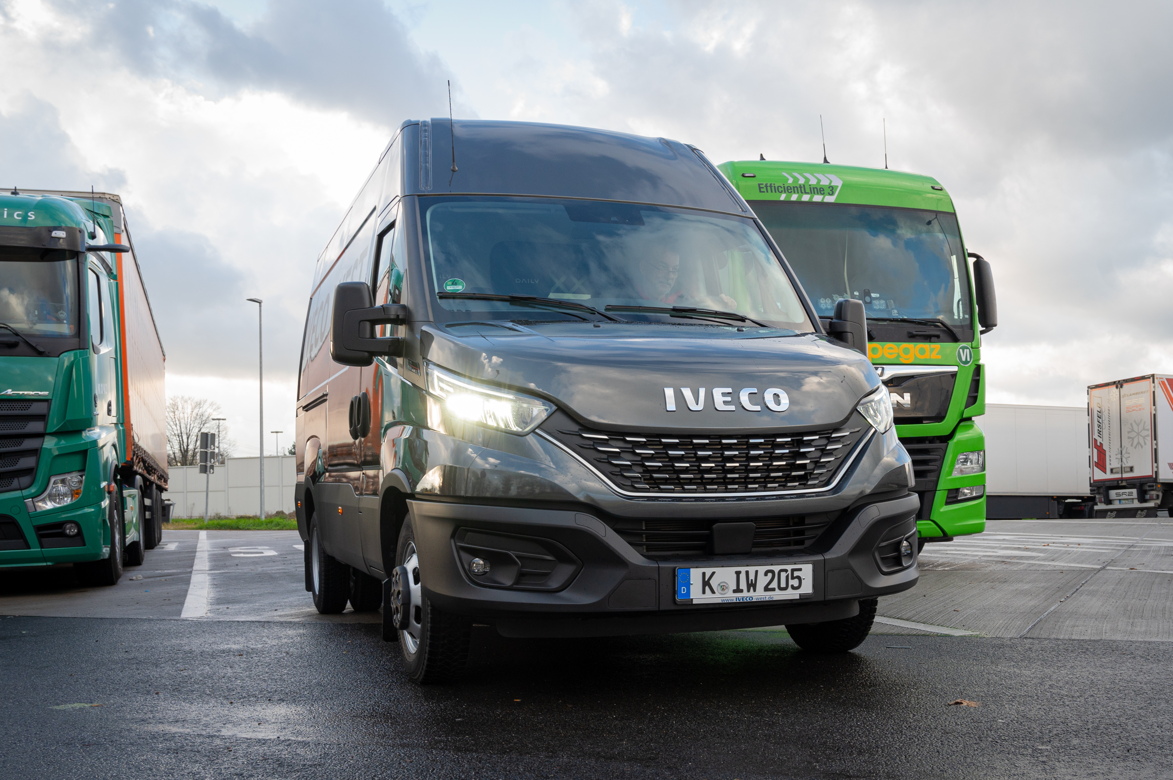 Die vielleicht wichtigste Info ganz zu Anfang: Das ist mal ein echtes Nutzfahrzeug. Kein auf Transporter "umgestricktes" Pkw-Derivat, sondern unverkennbar ein Fahrzeug mit echten Lkw-Genen. Erkennbar ist der Iveco Daily der aktuellen Modellgeneration 2019 nach seinem Facelift am großen Kühlergrill, schmalen Scheinwerfern und dreigeteilten Stoßfängern.