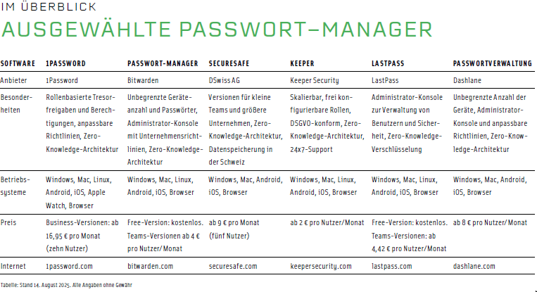 Starke Passwörter sind der beste Schutz für Online-Zugänge und Betriebsdaten im Internet. Passwort-Manager schaffen schnell Ordnung und Sicherheit.