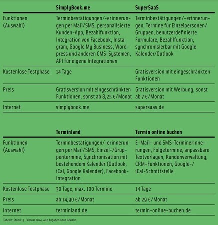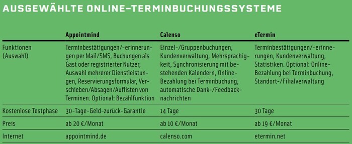 Aktuell verfügbare Online-Terminbuchungssysteme unterscheiden sich in den Punkten Funktionsumfang, Kosten und Bedienkomfort. Betriebe sollten deshalb ein System wählen, das ihren individuellen Anforderungen und Zielen entspricht. Wichtige Kriterien sind dabei: die Anpassbarkeit an das eigene Design, eine Integrationsmöglichkeit bestehender Softwarelösungen über Schnittstellen, maximale Sicherheit und Datenschutz sowie – falls gewünscht – eine Mehrsprachigkeit des Systems.