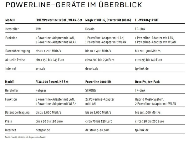2 Am zuverlässigsten funktioniert Powerline, wenn ausschließlich Produkte eines Herstellers genutzt werden. Wer Adapter verschiedener Hersteller mischen möchte, sollte auf den Powerline-Standard "Homeplug AV22 (bis zu 1.200 Gbit/s, max. 300 Meter) achten – dann sollten die Geräte miteinander kompatibel sein. Die neuesten Powerline-Adapter von Devolo setzen auf den schnelleren Standard Gh.n, der Geschwindigkeiten bis zu 2.400 MBit/s und Reichweiten bis zu 500 Metern ermöglicht.
