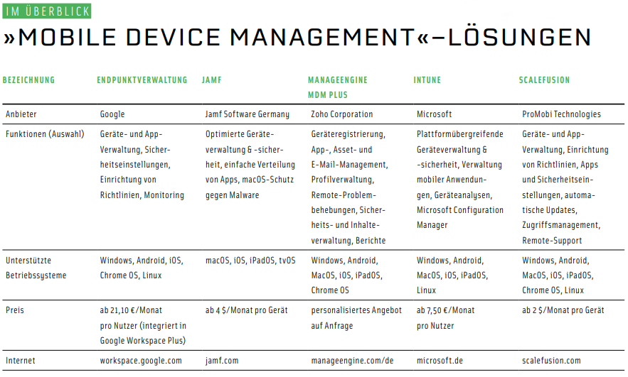 Ein Nachteil von MDM sind die laufenden Kosten, die je nach Anbieter und Funktionsumfang zwischen circa zwei und 20 Euro pro Gerät und Monat liegen. Doch meist amortisiert sich die Investition schnell durch die Zeitersparnis bei der Konfiguration neuer Geräte und die Vermeidung kostspieliger Datenpannen.