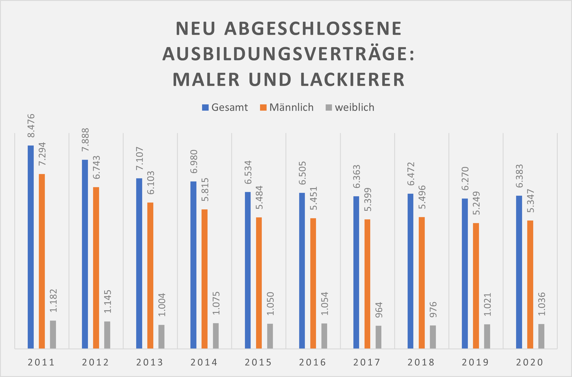 "Sehr ungewöhnlich" bekommt Kai Wiegand deshalb oft zu hören, wenn es um die Zusammensetzung seiner Belegschaft geht. Der Malerbetrieb beschäftigt elf Mitarbeiter. Rund die Hälfte davon ist weiblich. Seine Frau Maya kümmert sich ums Büro. Eine Gesellin, die im Betrieb ausgebildet wurde, ist Vorarbeiterin. Alle derzeitigen Auszubildenden sind junge Frauen – eine im zweiten, zwei im ersten Lehrjahr.