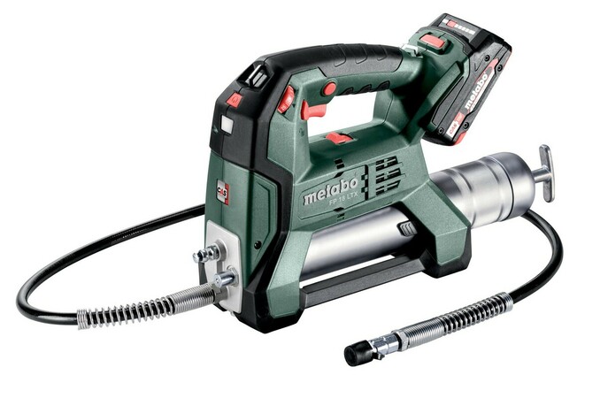 Für alle, die regelmäßig Kräne, Bau- und Nutzfahrzeuge warten müssen, hat Metabo jetzt seine erste Akku-Fettpresse im Programm. Die leistungsstarke FP 18 LTX schafft einen maximalen Betriebsdruck von 690 Bar. Zwei Gänge sorgen dafür, dass Profis je nach Anwendung zwischen hohem Druck oder hoher Auspressmenge wählen können.
